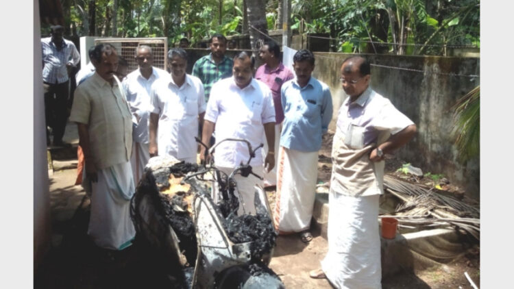കടവൂരില്‍ ആര്‍എസ്എസ് പ്രവര്‍ത്തകന്റെ ബൈക്ക് കത്തിച്ചു