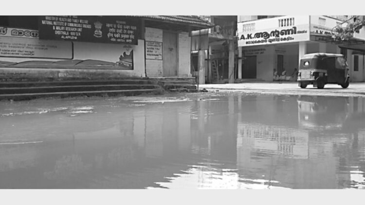 ചേര്‍ത്തല ഗവ. താലൂക്ക് ആശുപത്രിയില്‍ വളപ്പില്‍ വെള്ളക്കെട്ട് രൂക്ഷമായപ്പോള്‍.
