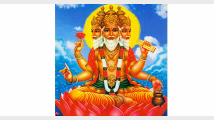 ആതാമരപ്പൂവില് ഭഗവാന് പൂര്ണ്ണമായും ആവേശിച്ചു. അങ്ങനെ ബ്രഹ്മാവ് താമരപ്പൂവില്നിന്നും ഉയര്ന്നു സ്വയംവന്നതിന്നാല് ‘സ്വയംഭൂ’ എന്നറിയപ്പെട്ടു.താമരപ്പൂവിന്റെ കര്ണ്ണികയില് ഇരുന്ന് ലോകമെങ്ങും കാണാഞ്ഞതിന്നാല് നാലുപാടും ബ്രഹ്മാവ് നോക്കി. അതിന്നാല് ബ്രഹ്മാവിന് നാലുമുഖങ്ങളുണ്ടായി.