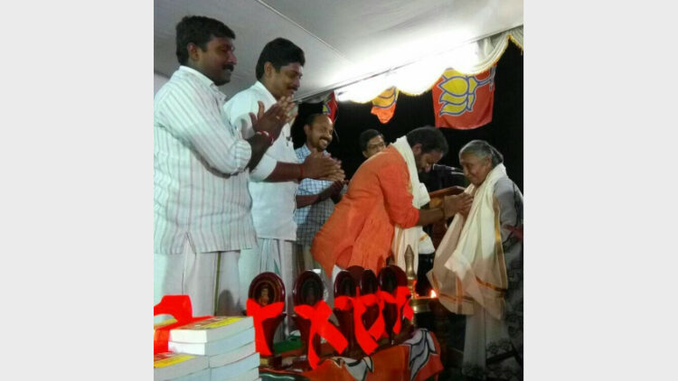 പി സംസ്ഥാന ഉപാധ്യക്ഷന് വി.ആര്. രാജശേഖരന് ഉദ്ഘാടനം ചെയ്തു. വിശ്വാസികളെ ക്ഷേത്രങ്ങളില് നിന്ന് അകറ്റി സംസ്കാരത്തെയും വിശ്വാസത്തേയും അതുവഴി ക്ഷേത്രങ്ങളെയും തകര്ക്കാനുള്ള ഗൂഢാലോചനയാണ് ഇടതുഭരണത്തില് കീഴില് അരങ്ങേറുന്നതെന്ന് അദ്ദേഹം പറഞ്ഞു. മുസ്ലിം, ക്രിസ്ത്യന് സമൂഹത്തിന്റെ ആരാധനാലയങ്ങളിലൊന്നും ഇടപെടാതെ അധികാരം ഉപയോഗിച്ച് ഹിന്ദുസമൂഹത്തെ തകര്ക്കാനും സന്യാസി സമൂഹത്തെ അവഹേളിക്കാനും ശ്രമിച്ചാല് ഹിന്ദുസമൂഹം ശക്തമായ രീതിയില് ഒറ്റക്കെട്ടായി നേരിടുമെന്നും അദ്ദേഹം പറഞ്ഞു.