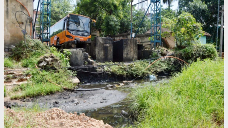 ഓയില് കലര്ന്ന വെള്ളവും ബസ്സുകള് വൃത്തിയാക്കുന്ന വെള്ളവുമായി കൂടിക്കലര്ന്ന് മലിന ജലം പുറത്തേക്ക് ഒഴുകി തുടങ്ങി. ഇടിഞ്ഞു വീണ മതിലിന്റെ കരിങ്കല്ലുകള് മാറ്റി ചെറിയ കുഴിയെടുത്ത് വെള്ളം റോഡിലേക്ക് പോകാതെ തടഞ്ഞു നിറുത്തിയെങ്കിലും മഴസമയങ്ങളില് കുഴിനിറഞ്ഞ് വെള്ളം റോഡിലേക്ക് ഒഴുകുന്നത് പതിവാകുന്നു. അതോടൊപ്പം മഴയത്ത് മണ്ണ് അടിഞ്ഞ് കുഴിയും നികന്നു. റോഡിലേക്ക് ഒഴുകുന്ന മലിനജലം ഓയില് കലര്ന്നതായതിനാല് ഇരുചക്രവാഹനങ്ങള് തെന്നിവീഴുന്നത് പതിവാകുന്നുണ്ട്.