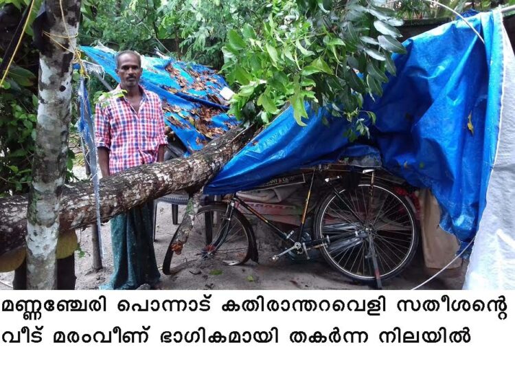 ശക്തിയായി വീശിയടിച്ച കാറ്റില് സമീപത്തെ പ്ലാവ് കടപുഴകി മുരളിയുടെ വീടിനു മുകലില് വീഴുകയായിരുന്നു. അടുക്കളയുടെ ഷീറ്റ്, ഓട്, തടിയുപകരണങ്ങള്, മിക്സി, സ്റ്റൗ എന്നിവ തകര്ന്നു. സമീപത്തെ മഹാഗണി വൃക്ഷം മറിഞ്ഞ് ചന്ദ്രശേഖരന്റെ വീടിന്റെ കൈവരി തകര്ന്നു. ആര്ക്കും പരിക്കില്ല.