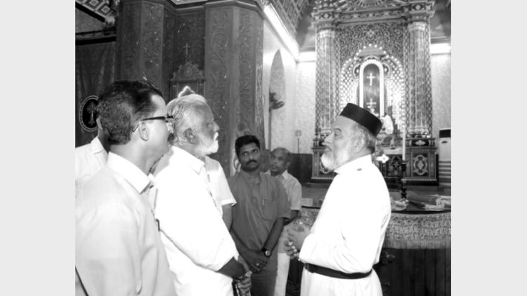 കോട്ടയം: ബിജെപി സംസ്ഥാന പ്രസിഡന്റ് കുമ്മനം രാജശേഖരന് മണര്കാട് സെന്റ് മേരീസ് കത്തീഡ്രല് സന്ദര്ശിച്ചു. സൗഹൃദസന്ദര്ശനത്തിനെത്തിയ കുമ്മനത്തെ പള്ളി വികാരി ഫാ. ഇ.ടി.കുര്യാക്കോസ് കോര്എപ്പിസ്കോപ്പ സഹവികാരിമാരായ ഫാ. മാത്യൂസ് മണവത്ത്, ഫാ. തോമസ് വേങ്കലത്ത്, ഇടവക സെക്രട്ടറി പൗലോസ്.വി.എം എന്നിവര് ചേര്ന്ന് സ്വീകരിച്ചു. തുടര്ന്ന് കഴിഞ്ഞദിവസം അന്തരിച്ച ഫാ. കുര്യാക്കോസ് മംഗലത്തിന്റെ വസതിയിലും സന്ദര്ശിച്ച ശേഷമാണ് കുമ്മനം മടങ്ങിയത്. ബിജെപി ജില്ലാ പ്രസിഡന്റ് എന്.ഹരി, ജനറല് സെക്രട്ടറി ജി.ലിജിന്ലാല്, നിയോജകമണ്ഡലം സെക്രട്ടറി സര്ജ്ജു മാലം, പഞ്ചായത്ത് പ്രസിഡന്റ് ശ്രീകുമാര് പുത്തന്മഠം, ന്യൂനപക്ഷ മോര്ച്ച നേതാക്കളായ പ്രിന്സ് മാത്യു, സണ്ണി, സോബിന്ലാല് എന്നിവരും കുമ്മനം രാാജശേഖരനോടൊപ്പമുണ്ടായിരുന്നു.