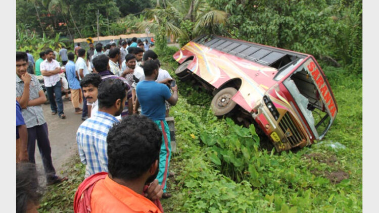 ശബ്ദംകേട്ട് ഓടിക്കൂടിയ നാട്ടുകാരും ബസ് ജീവനക്കാരും ചേര്ന്ന് ബസിന്റെ മുന്നിലെയും പിന്നിലെയും ചില്ലുകള് പൊട്ടിച്ചാണ് യാത്രക്കാരെ പുറത്തെടുത്തത്.