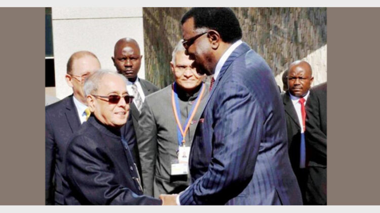 നമീബിയയുടെ സാമൂഹിക–സാമ്പത്തിക മേഖലകളിൽ ഭാരതം എല്ലാ സഹായവും നൽകാൻ സന്നദ്ധമാണെന്ന് നമീബിയയുടെ സംയുക്ത പാർലമെന്റ് സമ്മേളനത്തിൽ പ്രസംഗിക്കവേ രാഷ്ട്രപതി പ്രണബ് മുഖർജി പറഞ്ഞു.