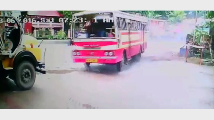 ആദ്യ ഇടിയില്‍തന്നെ ബസ്സിന്റെ ഡീസല്‍ ടാങ്ക് പൊട്ടി ഡീസല്‍ പുറത്തേക്ക് ഒഴുകാന്‍ തുടങ്ങിയിരുന്നു. ബസ്സില്‍ ഇടിച്ച ലോറി ലോറി കടകം തിരിഞ്ഞു. ഇടിയുടെ ആഘാതത്തില്‍ ബസ്സിന്റെ ഡ്രൈവര്‍ സീറ്റില്‍നിന്ന് തെറിച്ച് ബസ്സിനുള്ളിലേക്കു തന്നെ വീണു.