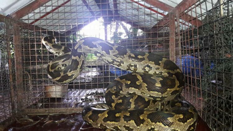 ഇരതേടിയെത്തിയ പെരുമ്പാമ്പ് കോഴിക്കൂട്ടില്‍ അകപ്പെട്ടു