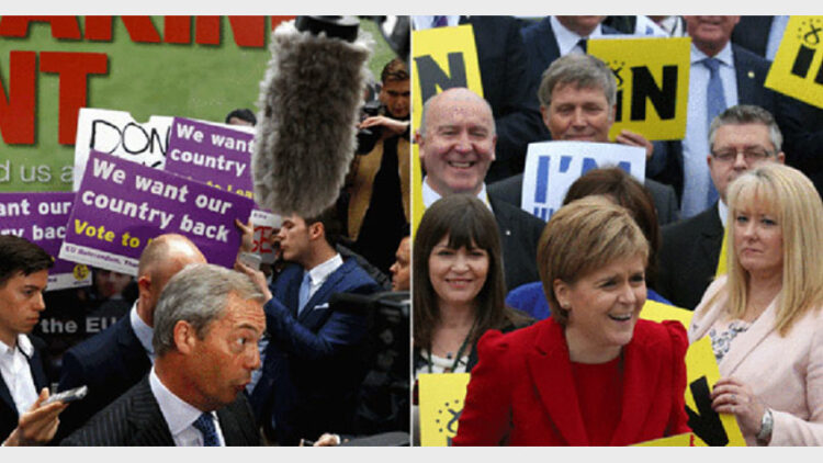 യൂറോപ്യന്‍ യൂണിയനെയും ലോകത്തെയും ബാധിക്കുന്ന നിര്‍ണായക വിധിയെഴുത്തില്‍ ബ്രിട്ടീഷ് പ്രധാനമന്ത്രി ഡേവിഡ് കാമറോണ്‍ യൂറോപ്യന്‍ യൂണിയനില്‍ തുടരണമെന്ന പക്ഷക്കാരനാണ്. അതേസമയം, മന്ത്രിസഭയിലെ അഞ്ചംഗങ്ങളും ചില എംപിമാരും എതിര്‍ക്കുന്നു. പ്രതിപക്ഷമായ ലേബര്‍ പാര്‍ട്ടി നേതാവ് ജെറമി കോര്‍ബിന്‍ കാമറോണിനൊപ്പം നില്‍ക്കുമ്പോള്‍, പാര്‍ട്ടിയിലെ പ്രബല വിഭാഗം എതിര്‍ക്കുന്നു. ഫലത്തില്‍ പ്രധാന രാഷ്‌ട്രീയ കക്ഷികളിലെല്ലാം അനുകൂലികളും എതിര്‍ക്കുന്നവരുമുണ്ട്.