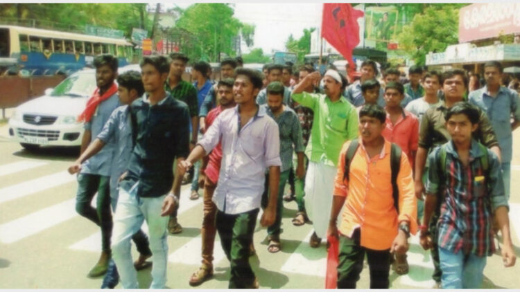 കൊല്ലം: എബിവിപി പ്രവര്ത്തകരെ സംഘടിതമായി മര്ദ്ദിച്ച എസ്എഫ്ഐ-പോലീസ് ബാന്ധവത്തിന് താക്കീത് നല്കുന്നതായിരുരുന്നു ഇന്നലത്തെ വിദ്യാഭ്യാസ ബന്ദ്. പഠിപ്പുമുടക്കി പ്രതിഷേധിച്ച വിദ്യാര്ത്ഥികള് ഇന്നലെ ജില്ലയിലെ വിവിധ സ്ഥലങ്ങളില് പ്രതിഷേധ പ്രകടനം നടത്തി. ചിന്നക്കടയില് നിന്നും ആരംഭിച്ച പ്രതിഷേധ പ്രകടനം താലൂക്ക് ഓഫീസ് ചുറ്റി ഹൈസ്കൂള് ജംഗ്ഷനില് സമാപിച്ചു. ധര്ണ മഹാനഗര് കണ്വീനര് മനു ഉദ്ഘാടനം ചെയ്തു. ജില്ലാ ജോയിന്റ് കണ്വീനര് ബി.ഗോകുല്, ജില്ലാ സമിതിഅംഗങ്ങളായ സനൂപ് സോമന്, പി.അനന്ദു, വിഷ്ണു, നഗര്സമിതി അംഗങ്ങളായ അഖില്പ്രകാശ്, അഭിഷേക്, ശരത്, അനന്ദുകൃഷ്ണന്, സുമേഷ്, എസ്.സുദീശ്, അഖ്നിവേഷ്, എന്നിവര് നേതൃത്വം നല്കി.