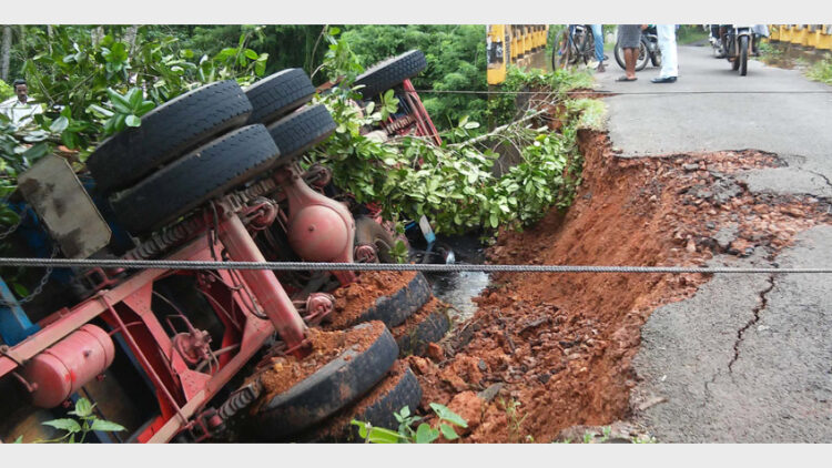 thanneermukkom nallennakkavala-munduchirakkal roadil paalathinte approach road thakarnnu marinja trailer lorry