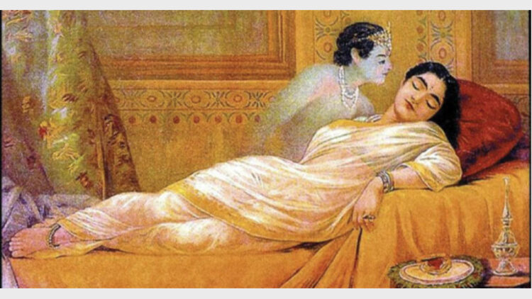 ബാണന്റെ പുത്രി ഉഷ ഒരു ദിവസം ഉറക്കത്തിൽ ഒരു സ്വപ്‌നം കണ്ടു. അതീവ സുന്ദരനായ ഒരു കോമളകുമാരനുമായി രതിക്രീഡാസുഖം അനുഭവിച്ചതായി കണ്ടു. ആ യുവാവിനെ അവളൊരിക്കലും നേരിട്ടു കണ്ടിട്ടുമില്ല. അങ്ങനെയൊരാളെ സ്വപ്‌നം കാണുന്നത് അസാധാരണത്വമായിരുന്നു. അവൾ അവനെ അവിടെയെല്ലാം തിരഞ്ഞു. ഉഷയ്‌ക്ക് അതൊരു സ്വപ്‌നമായി തോന്നിയിരുന്നില്ല. അവളെ കളിപ്പിക്കാൻ അവൻ ഒളിച്ചിരിക്കയാണെന്ന് കരുതി ഉച്ചത്തിൽ വിളിച്ചു നടന്നു.