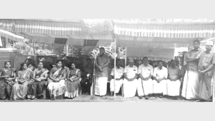 ബിജെപി പഞ്ചായത്ത് കമ്മറ്റിയുടെ ആഭിമുഖ്യത്തില് മലയിന്കീഴ് സാമൂഹികാരോഗ്യ കേന്ദ്രത്തിനു മുന്നില് നടത്തിയ നിരാഹാര സമരംജില്ലാ പ്രസിഡന്റ് അഡ്വ എസ്. സുരേഷ് ഉദ്ഘാടനം ചെയ്യുന്നു