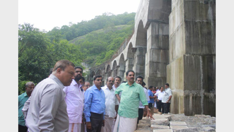 പുനലൂര് -ചെങ്കോട്ട ഗേജ് മാറ്റ പ്രവൃത്തികള് എന്.കെ.പ്രേമചന്ദ്രന് എംപിയുടെ നേതൃത്വത്തില് റെയില്വേ ചീഫ് എഞ്ചിനീയര് രവീന്ദ്രബാബു മധുര റയില്വേ ചീഫ് എഞ്ചിനീയര് രവീന്ദ്രബാബു മധുര റയില്വേ ഡിവിഷണല് മാനേജര് സുനില്കുമാര് ഗാര്ഗ് തുടങ്ങി ഉന്നത ഉദ്യോഗസ്ഥസംഘം സന്ദര്ശിച്ച് പ്രവര്ത്തനപുരോഗതി വിലയിരുത്തി. പുനലൂര് മുതല് ഇടമണ് വരെയുള്ള ഒന്നാം റീച്ചില് പാലങ്ങളും ഇതര പ്രവൃത്തികളും പൂര്ത്തീകരിച്ചു. രണ്ട് മേല്പാലങ്ങളും ഒരു അടിപ്പാതയുമാണ് ഈ മേഖലയയില് പൂര്ത്തീകരിച്ചത്. റയില്പ്പാളങ്ങള് സ്ഥാപിക്കുന്നതിനുള്ള പ്രവര്ത്തികള്ക്കുള്ള ടെണ്ടര് അവാര്ഡ് ചെയ്തു കഴിഞ്ഞു. രണ്ടാംമേഖലയായ ഇടമണ് കഴുതുരുട്ടി ‘ൂമി നിരത്തല് പണികള് അന്തിമഘട്ടത്തിലാണ്. പ്രദേശത്തെ പാലങ്ങളുടെ നിര്മ്മാണങ്ങള് പൂര്ത്തിയായിട്ടുണ്ട്.