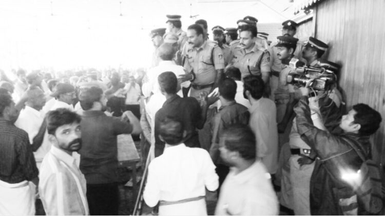 വെള്ളനാട് പഞ്ചായത്തിന്റെ വികസന സെമിനാര് തടസപ്പെടുത്താനുള്ള ബിജെപി പ്രവര്ത്തകരുടെ ശ്രമത്തെ പോലീസ് തടയുന്നു