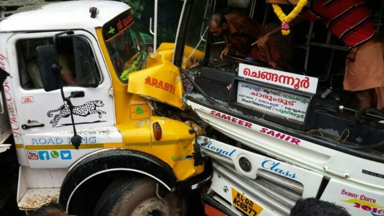 ഇന്നലെ രാവിലെ 8 ന് കൊല്ലം-തേനി ദേശീയ പാതയില് കോട്ടപ്പുറത്തെ വളവിലാണ് അപകടം നടന്നത്. ഭരണിക്കാവില് നിന്നും ചെങ്ങന്നൂരിലേക്ക് പോയ സ്വകാര്യ ബസും താമരക്കുളത്ത് നിന്ന് മണ്ണുമായെത്തിയ ടിപ്പറുമാണ് അപകടത്തില്പ്പെട്ടത്. ബസ് യാത്രക്കാരായ 15 പേര്ക്കാണ് പരിക്കേറ്റത്. ഇവര് ശാസ്താംകോട്ട, കരുനാഗപ്പള്ളി താലൂക്ക് ആശുപത്രികളില് ചികിത്സ തേടി. ടിപ്പറിന്റെ സ്റ്റിയറിംഗ് തകരാറാണ് അപകടകാരണമെന്ന് പറയപ്പെടുന്നു.