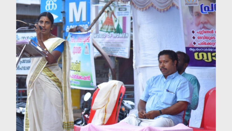 ഹിന്ദു ഐക്യവേദി പരവൂരില് സംഘടിപ്പിച്ച പ്രതിഷേധയോഗം ഉദ്ഘാടനം ചെയ്യുകയായിരുന്നു ടീച്ചര്
