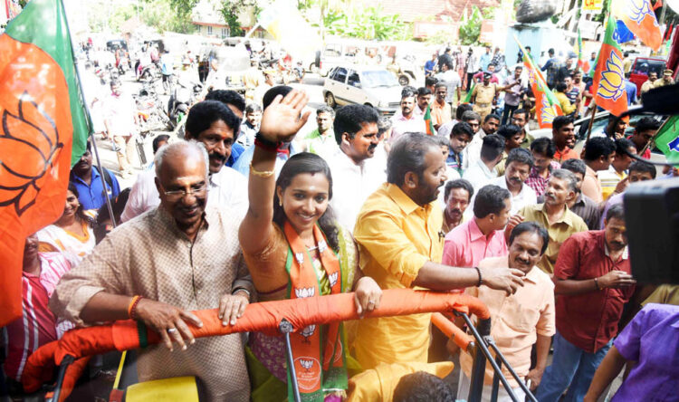 വോട്ടര്മാര്ക്ക് നന്ദി പറയാന് ഒ.രാജഗോപാല്, അഡ്വ. എസ്. സുരേഷ് എന്നിവര്ക്കൊപ്പം ആശാനാഥ് വാഹനപര്യടനത്തില്