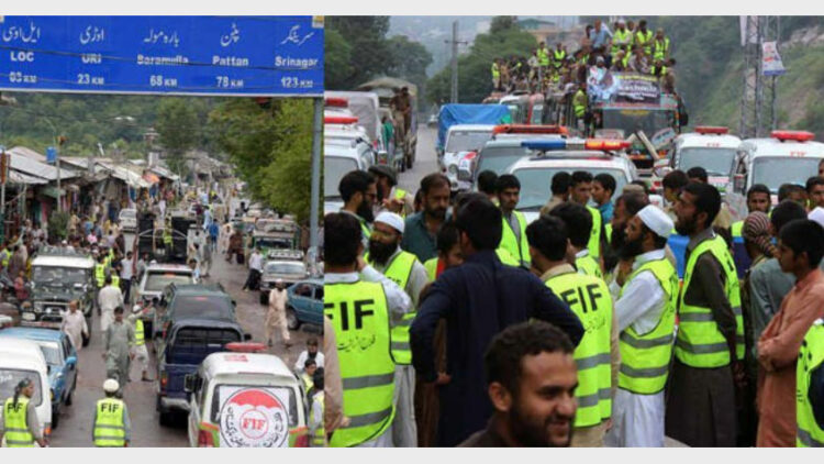 ചൊവ്വാഴ്‌ച്ച ഉച്ചയ്‌ക്കു ശേഷമാണ് മുസഫര്‍ബാദില്‍നിന്നു സംഘം പുറപ്പെട്ടത്. വിവിധ ഭാഗങ്ങളില്‍ സംഘത്തിനു സ്വീകരണം ലഭിച്ചെന്നും വാര്‍ത്താ ഏജന്‍സി റിപ്പോര്‍ട്ടു ചെയ്തു. കൂടുതല്‍ ജനങ്ങള്‍ നാളെ സംഘത്തിനൊപ്പം ചേരും. മുംബൈ ഭീകരാക്രമണത്തിന്റെ മുഖ്യസൂത്രധാരനാണ് ഹാഫിസ് സയീദ്. യുഎസ് 10 മില്യണ്‍ ഡോളര്‍ തലയ്‌ക്കു വിലയിട്ട ഭീകരനാണെങ്കിലും പാക്കിസ്ഥാനില്‍ ഇയാള്‍ക്കും സംഘടനയ്‌ക്കും വിലക്കില്ല.
