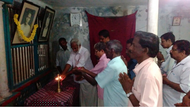 കേരള ക്ഷേത്ര സംരക്ഷണസമിതി ജില്ലാ സമ്മേളനത്തിന് തുടക്കം കുറിച്ച് ഗുരുചെങ്ങന്നൂരിന്റെ ഛായാചിത്രത്തിനു മുന്പില് പുഷ്പാര്ച്ചന നടത്തുന്നു