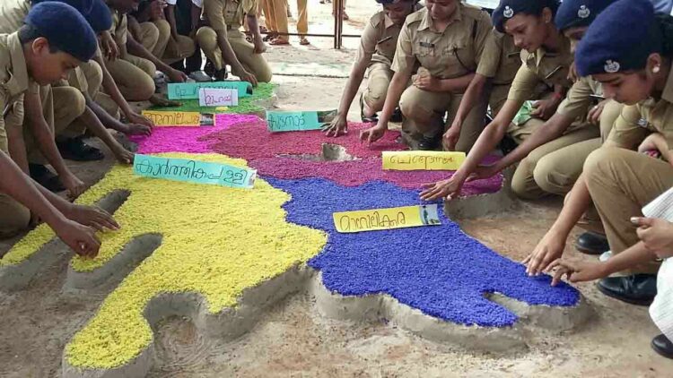 ആലപ്പുഴയുടെ 59-ാമത് ജന്മദിനാഘോഷങ്ങളുടെ ഭാഗമായി മുഹമ്മ എബിവിഎച്ച്എസ്എസിലെ എസ്പിസി കേഡറ്റുകള് ജില്ലാ ഭൂപടം തയ്യാറാക്കിയപ്പോള്