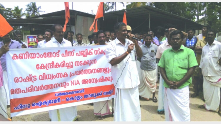 തീവ്രവാദസംഘടനയായ ഐഎസുമായി ബന്ധമുണ്ടെന്നാരോപിക്കുന്ന സ്കൂളിന്റെ പ്രവര്ത്തനത്തെക്കുറിച്ച് എന്ഐഎ അന്വേഷണം ആവശ്യപ്പെട്ട് ഹിന്ദുഐക്യവേദി സ്കൂളിലേക്ക് നടത്തിയ പ്രതിഷേധമാര്ച്ച് ഉദ്ഘാടനം ചെയ്യുകയായിരുന്നു അദ്ദേഹം. ഈ സ്കൂളിന്റെ ആദ്യം മുതലുള്ള പ്രവര്ത്തനം സംശയകരമാണ്. സ്കൂളിന്റെ മറവില് നടക്കുന്നത് മതംമാറ്റവും തീവ്രവാദപ്രവര്ത്തനവുമാണ്. സ്കൂള് റെയ്ഡു ചെയ്താല് അവിടെ നിന്നും രാജ്യത്തിനെതിരായി പ്രവര്ത്തിക്കുന്നതിന് പ്രേരണ നല്കുന്ന ലഘുലേഖകളും സിഡികളും കണ്ടെത്താന് സാധിക്കും. പോലീസ് അതിനുള്ള ആര്ജ്ജവം കാട്ടണം. ന്യൂനപക്ഷ സംരക്ഷണത്തിന്റെ മറവില് നടക്കുന്ന തീവ്രവാദപ്രവര്ത്തനം ചെറുക്കാന് സര്ക്കാര് തയാറാകണം. കേരളത്തില് തീവ്രവാദ പ്രവര്ത്തനം നടക്കുന്നുണ്ടെന്ന് പറയുന്ന മുഖ്യമന്ത്രി പിണറായി വിജയന് തീവ്രവാദികളെ പിടികൂടുന്നതിന് വേണ്ടിയുള്ള നടപടി സ്വീകരിക്കുന്നില്ല. തീവ്രവാദികള്ക്ക് കാവല് നില്ക്കേണ്ട ഗതികേട് കേരളാപോലീസിനുണ്ടായത് അപമാനരമാണ്. സ്കൂളിന്റെ പ്രവര്ത്തനം തുടര്ന്നാല് വര്ഷം തോറും തീവ്രവാദികളുടെ എണ്ണം കേരളത്തില് വര്ദ്ധിക്കും. സ്കൂള് അടച്ച് പൂട്ടുന്നതുവരെ ശക്തമായ സമരവുമായി ഹിന്ദുഐക്യവേദി മുന്നോട്ട് പോകുമെന്നും അദ്ദേഹം കൂട്ടിച്ചേര്ത്തു. ഹിന്ദുഐക്യവേദി ജില്ലാ പ്രസിഡന്റ് പി.ശശിധരന് അദ്ധ്യക്ഷത വഹിച്ചു.