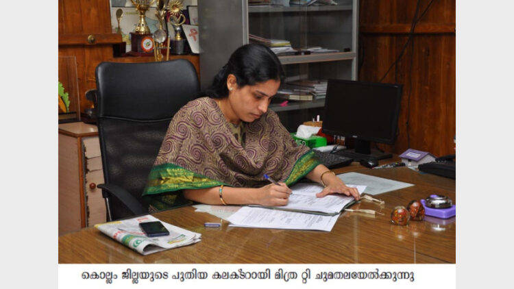 കൊല്ലം: പുതിയ കളക്ടറായി ടി.മിത്ര ചുമതലയേറ്റു. 2009 ഐഎഎസ് ബാച്ചുകാരിയായ മിത്ര അനെര്ട്ട് ഡയറക്ടറായി പ്രവര്ത്തിക്കുകയായിരുന്നു. തിരുവനന്തപുരം പേട്ട സ്വദേശിയാണ്. ഐഎഎസ് ലഭിച്ചതിനുശേഷം 2010ല് അസിസ്റ്റന്റ് കളക്ടറായി കൊല്ലത്തുണ്ടായിരുന്നു. പെരിന്തല്മണ്ണ സബ്കളക്ടര്, പഞ്ചായത്ത് വകുപ്പ് ഡയറക്ടര്, സര്വേ ആന്റ് ലാന്ഡ് റെക്കോര്ഡ്സ് വകുപ്പ് ഡയറക്ടര് എന്നീ നിലകളിലും പ്രവര്ത്തിച്ചു. തിരുവനന്തപുരം ഹോളി ഏഞ്ചല്സ് സ്കൂള്, ഓള് സെയിന്റ്സ് കോളജ്, സര്ക്കാര് ടീച്ചേഴ്സ് എജ്യൂക്കേഷന് കോളജന്നിവിടങ്ങളിലായിരുന്നു വിദ്യാഭ്യാസം. അണ്ടര് സെക്രട്ടറിയായി വിരമിച്ച എസ്.ത്രിവിക്രമന്നായരാണ് അച്ഛന്. അമ്മ ബി.സീതാലക്ഷ്മിയമ്മ (റിട്ട.അധ്യാപിക). തിരുവനന്തപുരം യൂണിവേഴ്സിറ്റി കോളജില് അസിസ്റ്റര് പ്രഫസറായ ചിത്ര ടി.നായര് സഹോദരിയാണ്.