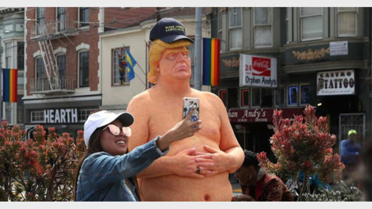 ഇന്ഡിക്ലൈന് എന്ന സംഘടനയാണ് വേറിട്ട പ്രതിഷേധവുമായി ന്യൂയോര്ക്ക്, സാന് ഫ്രാന്സിസ്കോ, ലോസ് ആഞ്ചലസ്, കീവ്ലന്ഡ് എന്നിവിടങ്ങളില് ട്രംപിന്റെ പൂര്ണകായ നഗ്ന പ്രതിമ സ്ഥാപിച്ചത്.