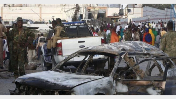 അല് ഷബാബ് എന്ന ഭീകര സംഘടന സ്ഫോടനത്തിന്റെ ഉത്തരവാദിത്വം ഏറ്റെടുത്തിട്ടുണ്ട്. അന്താരാഷ്ട്ര പിന്തുണയുള്ള മൊഗാദിഷു സര്ക്കാരിനെതിരെ പോരാടുന്ന ഭീകര സംഘടനയാണ് അല് ഷബാബ്. സൊമാലിയയില് പ്രവര്ത്തിക്കുന്ന യുഎന് സംഘം സ്ഫോടനത്തെ അപലപിച്ചു.