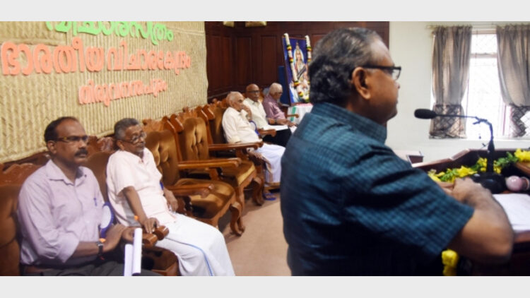 ഭാരതീയ വിചാരേകന്ദ്രത്തില്‍ നടന്ന വിചാര കേരള നവോത്ഥാനം ചരിത്രവും വര്‍ത്തമാനവും എന്ന വിഷയത്തില്‍ നടന്ന വിചാര സത്രത്തില്‍ കേന്ദ്ര സര്‍വ്വകലാശാല വൈസ് ചാന്‍സിലര്‍ ഡോ. ജി. ഗോപകുമാര്‍ മുഖ്യപ്രഭാഷണം നടത്തുന്നു