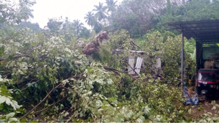 ഇരിട്ടി മൈസൂര് അന്തര് സംസ്ഥാന പാതയില് കുന്നോത്ത് ബെന്ഹില് സ്കൂളിന് സമീപം തിങ്കളാഴ്ച രാത്രി 11 മണിയോടെ ആണ് കൂറ്റന് ആഞ്ഞിലി മരം റോഡിനു കുറുകേ മറിഞ്ഞു വീണത്. പകല് സമയങ്ങളില് ഇടതടവില്ലാതെ നൂറുകണക്കിന് വാഹനങ്ങള് കടന്നു പോവുന്ന റോഡില് പകല് സമയത്തായിരുന്നു മരം മറിഞ്ഞു വീണിരുന്നതെങ്കില് വന് ദുരന്തം തന്നെ ഉണ്ടാകുമായിരുന്നു. വീഴ്ചയില് വൈദ്യുതി ലൈനുകള് തകര്ന്നത് മൂലം മണിക്കൂറുകളോളം വൈദ്യുതി ബന്ധവും ഈ വഴിയുള്ള ഗതാഗതവും തടസ്സപ്പെട്ടു. ഇരിട്ടി പോലീസും, അഗ്നിശമന സേനയും രണ്ടു മണിക്കൂറിലേറെ പരിശ്രമിച്ച ശേഷമാണ് വാഹന ഗതാഗതം പുനസ്ഥാപിച്ചത്.