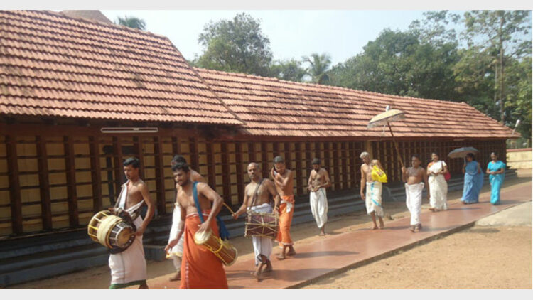 സാധാരണ ക്ഷേത്രങ്ങളില് ഉഷഃപൂജ, ഉച്ചപൂജ, അത്താഴപൂജ എന്നീ മൂന്നു പൂജകളാണ് പതിവ്. മഹാക്ഷേത്രങ്ങളില് സുര്യപ്രകാരം ബിബത്തില് തട്ടുമാറ് സൂര്യന് ഉദിച്ചുയരുമ്പോള് എതൃത്ത് പൂജയും, പഴയ കാലത്ത് നിഴല് അളന്ന് പന്ത്രണ്ട് അടി വരുന്ന സമയത്ത് (ഉച്ചപൂജയ്ക്കു മുമ്പായി) പന്തിരടി പൂജയും പതിവുണ്ട്. ഇതു കൂടാതെ മൂന്ന് ശീവേലികളും നിത്യവും നടത്തി വരുന്നു.നിത്യശിവേലി എന്നാണിതിനെ പറയുക. പാണി കൊട്ടി ദേവനെ പുറത്തേക്കെഴുന്നള്ളിച്ച് ക്ഷേത്രത്തിനകത്തെ സപ്തമാതൃക്കള്ക്കും ദിക് പാലകന്മാര്ക്കും ബലിതൂവുമ്പോള് തിമില, വീക്കന് ചെണ്ട, ചേങ്ങില (ഇപ്പോള് ഇലത്താളവും ഉപയോഗിക്കാറുണ്ട്) എന്നിവ കൊട്ടിവരുന്നു.