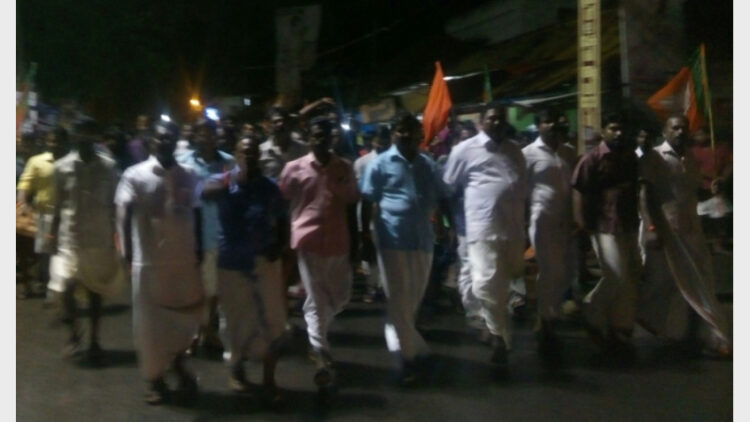 കോവളം നിയോജക മണ്ഡലം പ്രസിഡന്റ് കട്ടച്ചല്‍കുഴി ബി. രാധാകൃഷ്ണന്‍, യുവമോര്‍ച്ച മണ്ഡലം പ്രസിഡന്റ് എസ്. അഭിലാഷ്, ബിജെപി വെങ്ങാനൂര്‍  പ്രസിഡന്റ് ഉണ്ണികൃഷ്ണന്‍, ജനറല്‍ സെക്രട്ടറി ലാലന്‍, കൗണ്‍സിലര്‍ സന്തോഷ്, വാര്‍ഡ് മെമ്പര്‍ ആര്‍.സി. വിഷ്ണു എന്നിവര്‍ പ്രകടനത്തിന് നേതൃത്വം നല്‍കി.