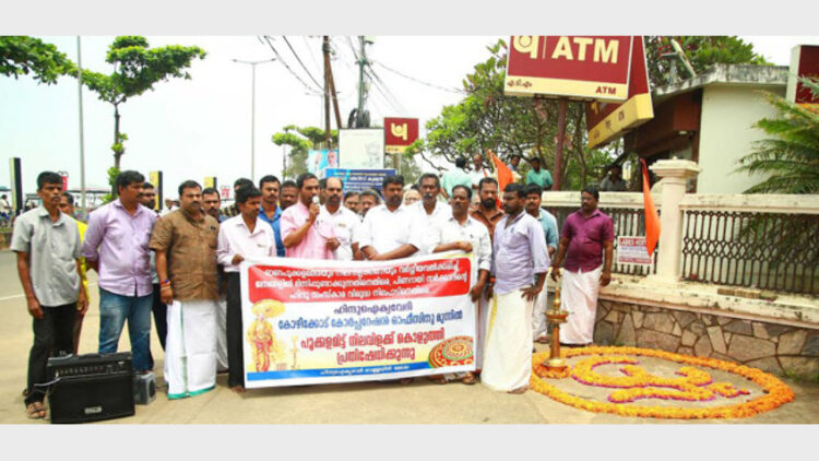 പൂക്കളമിട്ട് നിലവിളക്ക് കൊളുത്തി ഹിന്ദുഐക്യവേദി പ്രതിഷേധം