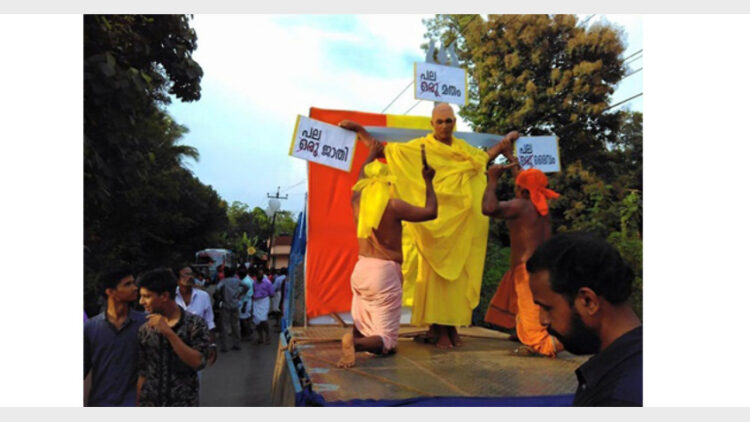 നമുക്ക് ജാതിയില്ലായെന്ന് ഗുരുദേവന്‍ പറഞ്ഞതിന്റെ പേരില്‍ സിപിഎമ്മിന്റെ തിടമ്പു നൃത്തം അരങ്ങുതകര്‍ക്കുന്നു. ഏതു സന്ദര്‍ഭത്തിലാണ് അങ്ങനെ പറഞ്ഞതെന്ന് അവര്‍ക്കറിവില്ല. ഗുരുവിനെ കുരിശില്‍ തറച്ചും കഴുത്തില്‍ കയര്‍ കെട്ടി വലിച്ചും ആസ്വദിച്ചവര്‍ അദ്ദേഹത്തിന്റെ പേരില്‍ കള്ളക്കണ്ണീരൊഴുക്കുന്നു.
