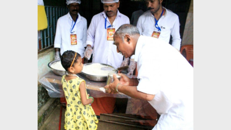 തലശ്ശേരി: പെരിങ്ങത്തൂര്‍ ഗുരുജിമുക്ക് സുദര്‍ശന ഗ്രാമസേവാസമിതി തലശ്ശേരി ജനറല്‍ ഹോസ്പിറ്റലിലെ രോഗികള്‍ക്കും കൂട്ടിരിപ്പുകാര്‍ക്കും തിരുവോണസദ്യ നല്‍കി സീമാ ജാഗരണ്‍ മഞ്ച് അഖില ഭാരതിയ സംയോജകന്‍ എ.ഗോപാലകൃഷ്ണന്‍ ഉദ്ഘാടനം ചെയ്തു. ഡോ.രാജിവ് രാഘവന്‍ അദ്ധ്യക്ഷത വഹിച്ചു. രാഷ്ടിയ സ്വയം സേവക സംഘം പ്രാന്തീയ സഹസമ്പര്‍ക്ക പ്രമുഖ് പി.പി.സുരേഷ് ബാബു, ജില്ലാ സേവാ പ്രമുഖ് സുരേഷ് ബാബു, കെ.പ്രകാശന്‍ മാസ്റ്റര്‍, രാജഗോപാല്‍, കെ.പി.മഹേഷ്, കെ.ഷൈജു, ടി.പി.രാജന്‍, എം.പി.പ്രജിഷ്, കെ.പി.സുധീര്‍ എന്നിവര്‍ പങ്കെടുത്തു.