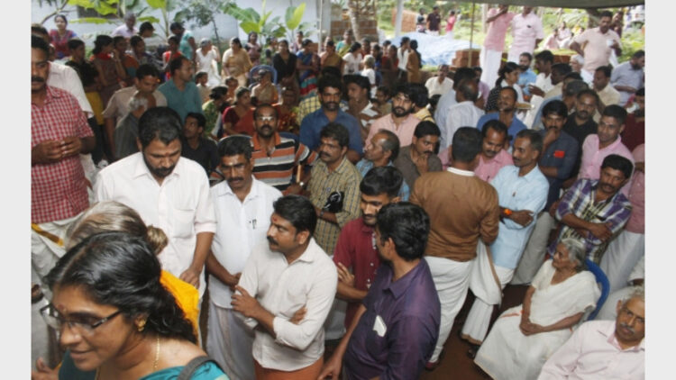 തില്ലങ്കേരി കാര്ക്കോട് ബിജെപി കേന്ദ്രസംഘത്തെ കാണാനെത്തിയ സംഘപരിവാര് പ്രവര്ത്തകര്