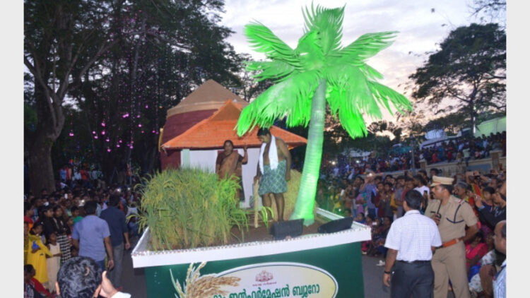 കേരള സര്‍ക്കാര്‍ വിഭാഗത്തില്‍ ഒന്നാം സ്ഥാനം നേടിയ ഫാം ഇന്‍ഫര്‍മേഷന്‍ ബ്യൂറോയുടെ നെല്‍കൃഷി ഫ്‌ളോട്ട്