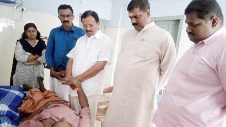 തലശ്ശേരി: സിപിഎമ്മുകാര് വെട്ടിക്കൊലപ്പെടുത്താന് ശ്രമിച്ച് ഗുരുതരമായി പരിക്കേറ്റ് തലശ്ശേരി ടെലി ഹോസ്പിറ്റലില് ചികിത്സയില് കഴിയുന്ന ബിഎംഎസ് തലശ്ശേരി മേഖലാ സെക്രട്ടറി കെ.രമേശനെ ബിജെപി ദേശീയ ഓര്ഗ്ഗനൈസിങ്ങ് സഹ സെക്രട്ടറി അരവിന്ദാക്ഷമേനോന് സന്ദര്ശിച്ചു. ബിജെപി മുന് സംസ്ഥാന പ്രസിഡണ്ട് വി.മുരളീധരന്, യുവമോര്ച്ച സംസ്ഥാന വൈസ് പ്രസിഡണ്ട് ബിജു ഏളക്കുഴി, ബിജെപി തലശ്ശേരി മണ്ഡലം വൈസ് പ്രസിഡണ്ട് കെ.കെ.പ്രേമന്, മഹിളാമോര്ച്ച മണ്ഡലം പ്രസിഡണ്ട് സ്മിത ജയമോഹന് എന്നിവരും അദ്ദേഹത്തോടൊപ്പമുണ്ടായിരുന്നു.