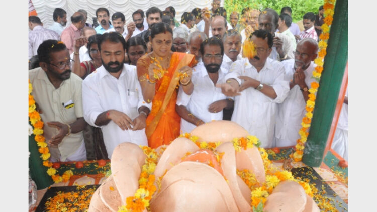 സ്മൃതികുടീരത്തില് ബിജെപി നേതാക്കള് പുഷ്പാര്ച്ചന നടത്തുന്നു