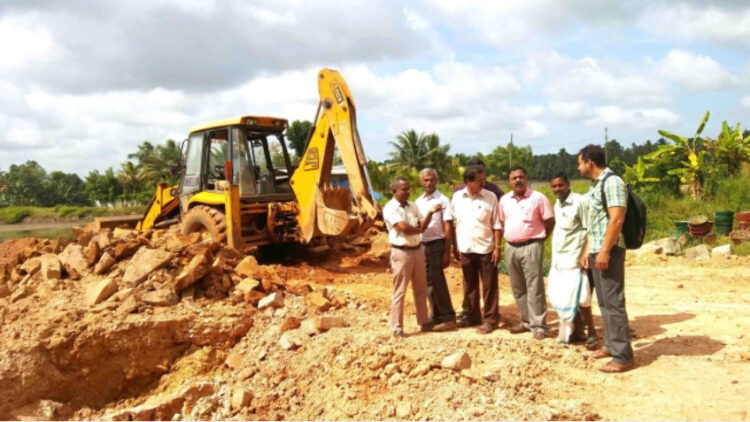 നിലം നികത്താനുപയോഗിച്ച ഗ്രാവല്‍ റവന്യൂ ഉദ്യോഗസ്ഥരുടെ നേതൃത്വത്തില്‍ നീക്കം ചെയ്യുന്നു