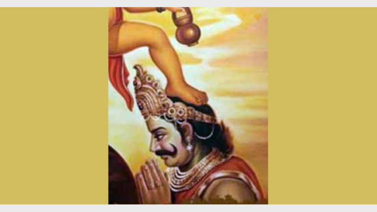 മഹാബലിയുടെ കഥയില് ധര്മ്മത്തിന്റേ ഭരണഘടനയുടെ ഈ അലംഘൃതയാണ് പ്രതീകാത്മകമായി ചിത്രീകരിച്ചിട്ടുള്ളത്. മഹാബലി വളരെ യോഗ്യനായിരുന്നു; തന്നെയല്ല അദ്ദേഹം പ്രഹ്ലാദന്റെ പൗത്രന്-കൊച്ചുമകന് കൂടിയായിരുന്നു. പ്രഹ്ലാദനാണെങ്കില് വിഷ്ണുവിന് വളരെ പ്രിയപ്പെട്ടവനുമായിരുന്നു. ദൈത്യന്മാരില് ഞാന് പ്രഹ്ലാദനാകുന്നു.