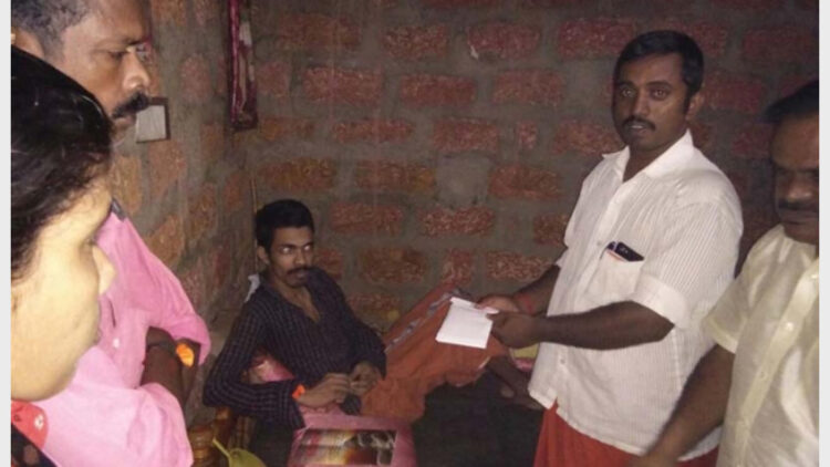 പുത്തൂര്: സാമൂഹ്യവിരുദ്ധരും മാര്ക്സിസ്റ്റ് ഗുണ്ടകളും ചേര്ന്ന നടത്തിയ അക്രമത്തില് നട്ടെല്ലിന് പരിക്കുപറ്റി അരയ്ക്ക് താഴെ തളര്ന്ന് കിടക്കുന്ന രഞ്ചിത്തിന് ചികിത്സാസഹായം നല്കി.