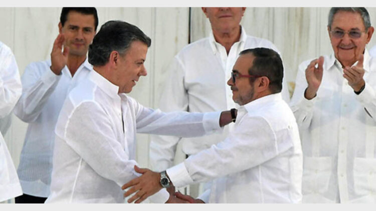 സപ്തംബര്‍ 26നാണ് ശ്രീ ശ്രീ രവിശങ്കറിന്റെ സാന്നിധ്യത്തില്‍ ഇവര്‍ കരാര്‍ ഒപ്പിട്ടത്. സര്‍ക്കാര്‍ സൈന്യവും ഫാര്‍ക്കിന്റെ വിമതസേനയും തമ്മിലുള്ള യുദ്ധത്തില്‍ ആയിരക്കണക്കിന് ജീവനുകളാണ് പൊലിഞ്ഞത്. അരനൂറ്റാണ്ടായി ആഭ്യന്തര യുദ്ധം തുടങ്ങിയിട്ട്. അടുത്തിടെ സാന്റോസും ടിം ചെങ്കോയും തമ്മില്‍ നടത്തിയ വിപുലമായ ചര്‍ച്ചകളിലാണ് സമാധാനക്കരാറായത്. വലിയ ചരിത്രസംഭവമാണ് കരാര്‍. അതിനാല്‍ നോബല്‍ സമ്മാനത്തിന് ഇവരാണ് അര്‍ഹര്‍. പ്രമുഖ ചരിത്രകാരന്‍ ആഷ്‌ലി സ്‌വീന്‍ പറഞ്ഞു.