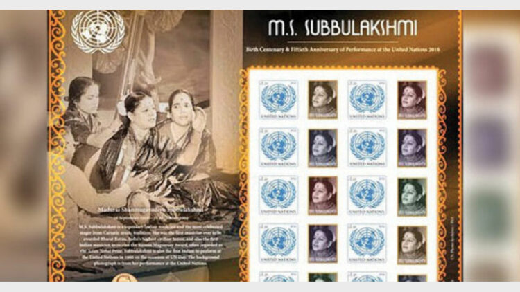 ഐക്യരാഷ്ട്രസഭയുടെ ചിഹ്നത്തോടൊപ്പം സുബ്ബലക്ഷ്മിയുടെ ചിത്രവും ചേര്ത്താണ് സ്റ്റാമ്പ്. യുഎന് ആസ്ഥാനത്ത് ഒക്ടോബര് ഒന്നിനായിരുന്നു സ്റ്റാമ്പ് പുറത്തിറക്കല് ചടങ്ങ്.