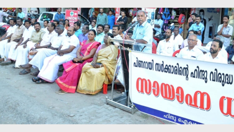 കൊട്ടാരക്കര പുലമണില് കേരളസര്ക്കാരിന്റെ ഹിന്ദുവിരുദ്ധതക്ക് എതിരെയുള്ള സായാഹ്നധര്ണ്ണ ഉദ്ഘാടനം ചെയ്യുകയായിരുന്നു അദ്ദേഹം.