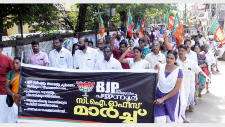 നേരത്തെ പെരുമ്പയില്‍ നിന്നാരംഭിച്ച പ്രകടനത്തിന് എം.പി.രവീന്ദ്രന്‍, ഗംഗന്‍ തായിനേരി, എ.കെ.രാജഗോപാലന്‍ മാസ്റ്റര്‍, ബിജെപി പയ്യന്നൂര്‍ മണ്ഡലം പ്രസിഡണ്ട് ടി.രാമകൃഷ്ണന്‍, ജനറല്‍ സെക്രട്ടറിമാരായ സി.കെ.രമേശന്‍ മാസ്റ്റര്‍, പനക്കല്‍ ബാലകൃഷ്ണന്‍, കല്ലാശ്ശേരി മണ്ഡലം ഭാരവാഹികളായ വിജയന്‍ മാങ്ങാട്, കെ.സജീവന്‍, ശങ്കരന്‍ കൈതപ്രം തുടങ്ങിയവര്‍ നേതൃത്വം നല്‍കി. നൂറുകണക്കിന് ബിജെപി പ്രവര്‍ത്തകര്‍ മാര്‍ച്ചില്‍ അണിനിരന്നു.