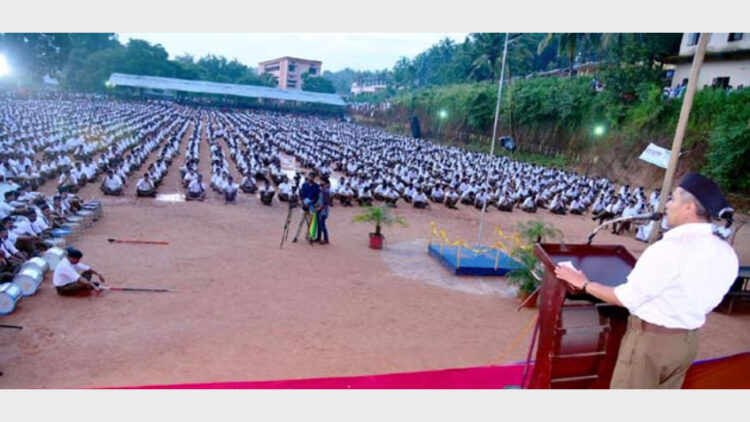 താമരശ്ശേരിയില് നടന്ന കോഴിക്കോട് ഗ്രാമജില്ലാ വിജയദശമി പൊതുപരിപാടിയില് ആര്എസ്എസ് പ്രാന്തീയ സേവാപ്രമുഖ് എ. വിനോദ് സംസാരിക്കുന്നു