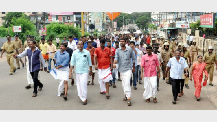 പ്രതിഷേധിച്ച് ബിജെപി ആഹ്വാനം ചെയ്ത ഹര്‍ത്താലിനോടനുബന്ധിച്ച് കാസര്‍കോട് നഗരത്തില്‍ ബിജെപിയുടെ ആഭിമുഖ്യത്തില്‍ നടന്ന പ്രകടനം
