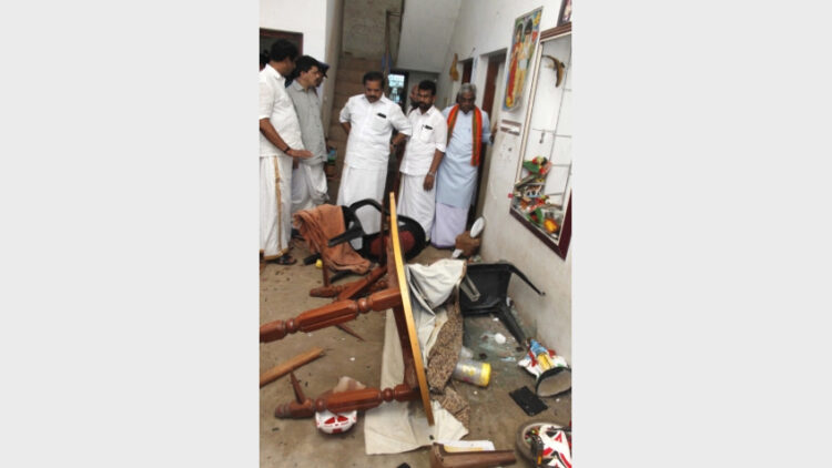 പാതിരിയാട്(കണ്ണൂര്): സിപിഎം ക്രൂരതക്കിരയായി സര്വ്വവും നഷ്ടപ്പെട്ട സംഘപരിവാര് പ്രവര്ത്തകരുടെ വീടുകളില് സാന്ത്വന സ്പര്ശവുമായി സംഘപരിവാര് സംഘടനാ നേതാക്കളെത്തി. സിപിഎമ്മുകാര് കഴിഞ്ഞ ദിവസങ്ങളില് അക്രമിച്ച് തകര്ത്ത പിണറായി, വേങ്ങാട് പഞ്ചായത്തുകളിലെ സംഘപരിവാര് പ്രവര്ത്തകരുടെ വീടുകളിലാണ് നേതാക്കള് ഇന്നലെ സന്ദര്ശനം നടത്തിയത്. സര്വ്വവും നഷ്ടപ്പെട്ട അമ്മമാര് ഗദ്ഗതകണ്ഠരായി ഈറനണിഞ്ഞ കണ്ണുകളുമായി നേതാക്കള്ക്കു മുമ്പില് സിപിഎമ്മുകാരില് നിന്നും തങ്ങള്ക്കുണ്ടായ ദുരനുഭവങ്ങള് വിവരിച്ചപ്പോള് കണ്ടു നിന്നവരുടേയും നേതാക്കക്കളുടേയും കണ്ണുകള് നിറഞ്ഞു. കുടുംബങ്ങളെ ആശ്വസിപ്പിക്കാന് നേതാക്കള് ഏറെ പണിപ്പെട്ടു.
