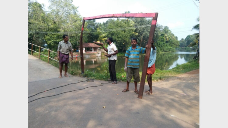എടത്വ: ഭാരം കയറ്റിവരുന്ന വാഹനങ്ങളുടെ സര്വ്വീസ് നീയന്ത്രിക്കാന് ബലക്ഷയമുള്ള പാലത്തിനുകുറുകെ കേഡര് സ്ഥപിച്ചു. തലവടി പഞ്ചായത്ത് 11-14 വാര്ഡുകള് തമ്മില് ബന്ധിപ്പിക്കുന്ന ആനപ്രമ്പാല് ക്ഷേത്രക്കടവ് പാലത്തിന് കുറുകെയാണ് ഇരുമ്പു കേഡര് സ്ഥാപിച്ചത്. പമ്പാനദിയുടെ പ്രധാന കൈവഴിയായ തോടിന് കുറുകെ പതിറ്റാണ്ടുകള്ക്ക് മുമ്പ് നിര്മിച്ച പാലം കാലപ്പഴക്കത്താല് കല്ലുകളും, കോണ്ക്രീറ്റും അടര്ന്ന് ബലക്ഷയം സംഭവിച്ചിരുന്നു. പാലം ബലക്ഷയമായതോടെ നാട്ടുകാര് പാലത്തിന് കുറുകെ ഇരുമ്പുകേഡര് സ്ഥാപിച്ചെങ്കിലും സാമൂഹികവിരുദ്ധര് കേഡര് അറുത്ത് നീക്കംചെയ്തിരുന്നു. തുടര്ന്നാണ് വാര്ഡ് വികസന സമതിയുടേയും, അയല് പ്രതിനിധി സഭയുടേയും നേതൃത്വത്തില് പാലത്തിന് കുറുകെ വീണ്ടും ഇരുമ്പുകേഡര് സ്ഥാപിച്ചത്. പഞ്ചായത്ത് അംഗം അജിത്ത് കുമാര് പിഷാരത്ത്, ഗോപിനാഥ് ആനന്ദാലയം, ഗോപിനാഥന് നായര്, തോമസുകുട്ടി ചാലുങ്കല്, സജികുമാര്, ദൂപ സജീവ്, സിന്ദു എന്നിവര് നേതൃത്വം നല്കി.